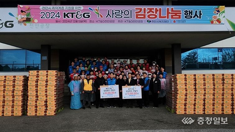 충청일보 박사현 기자 | KT·G 천안공장(공장장 신대경)은 5일 천안시 취약계층의 따뜻한 겨울나기를 지원하는‘2024 KT·G 상상나눔 On-情’ 행사를 천안시복지재단(이사장 이운형)이 참여한 가운데 진행했다고 밝혔다.