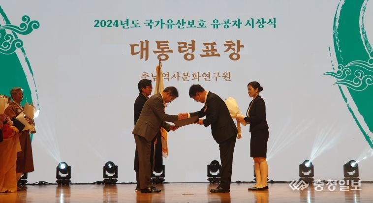 충청일보 박사현 기자 | 충남역사문화연구원은 12월 9일 정부대전청사에서 개최된 제1회 국가유산의 날 기념식을 맞아 개최된 ‘2024년도 국가유산보호 유공자 시상식’에서 학술∙연구분야 대통령표창을 수상했다.