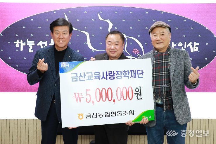 충청일보 박사현 기자 | 금산농업협동조합과 퇴직공무원 양순원 씨는 지난 9일 금산교육사랑재단에 장학금을 각각 기탁했다.