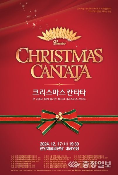 그들만이 가진 따뜻한 음색으로 크리스마스의 진정한 의미를 담은 메시지를 통해 관객들의 마음에 큰 울림을 주는 ‘크리스마스 칸타타’공연은 오는 17일 화요일 저녁 7시 30분에 천안예술의전당 대공연장에서 열린다.
