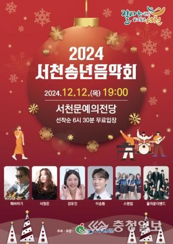 충청일보 박사현 기자 | 서천군이 군민과 함께 희망찬 새해를 맞이하기 위해 오는 12일 오후 7시 문예의전당 대강당에서‘2024 서천송년음악회’를 개최한다.