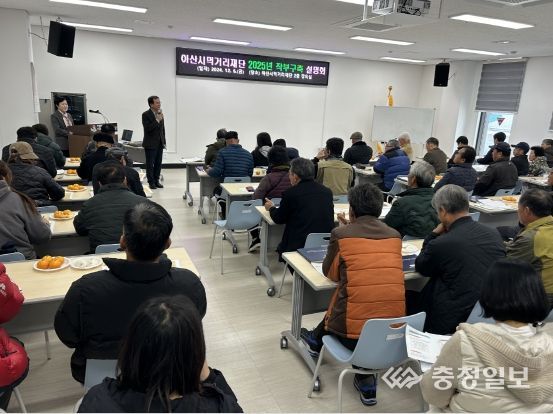 충청일보 박사현 기자 | (재)아산시먹거리재단은 지난 12월 6일 재단회의실에서 “2025년 생산체계구축을 위한 작부구축 설명회를 학교 급식 및 공공급식 생산자 60여명이 참석하여 성황리에 개최했다.”고 밝혔다.