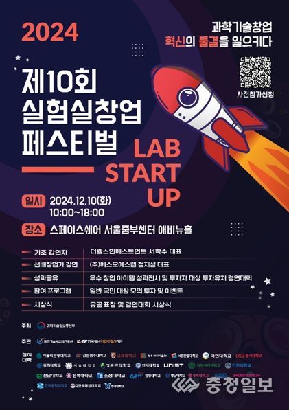 충청일보 김은경 기자 | 과학기술정보통신부는 12월 10일 스페이스쉐어 서울중부센터에서 「제10회 실험실창업페스티벌」을 개최했다.
