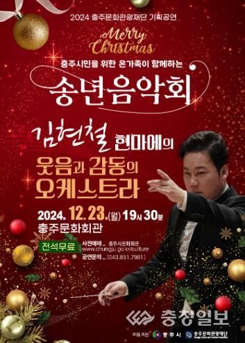 충청일보 김문호 기자 | (재)충주문화관광재단이 오는 23일 오후7시30분 충주시문화회관 대공연장에서 ‘2024 웃음과 감동의 송년음악회’를 개최한다.