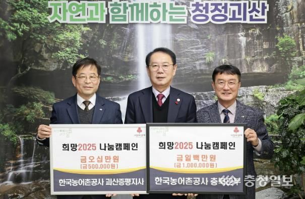 같은날, 한국농어촌공사 충북지역본부와 괴산증평지사도 희망2025 나눔캠페인의 일환으로 각각 100만 원과 50만 원의 성금을 괴산군에 전달했다.