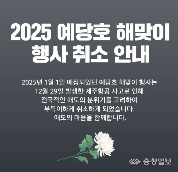 행사는 내년 1월 1일 오전 7시부터 예당호 수변무대에서 개최될 예정이었다.