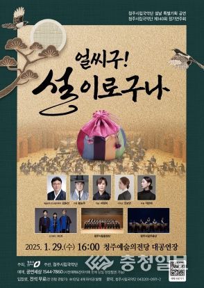 충청일보 김문호 기자 | 청주시립국악단은 설 당일인 1월 29일 오후 4시 청주예술의전당 대공연장에서 설날 특별기획공연 ‘얼씨구! 설이로구나’ 공연을 개최한다.