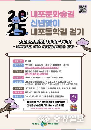 충청일보 박사현 기자 | 충남도는 다음달 8일 ‘신년맞이 내포동학길 걷기’ 행사를 개최한다고 19일 밝혔다.
