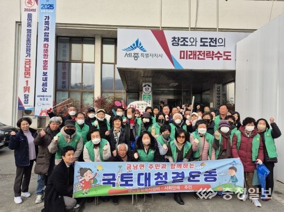 충청일보 김정운 기자 | 세종특별자치시 금남면 새마을협의회가 22일 다가오는 설 명절을 맞아 대평시장과 용포리 진입로 등에서 국토대청결 운동을 진행했다.