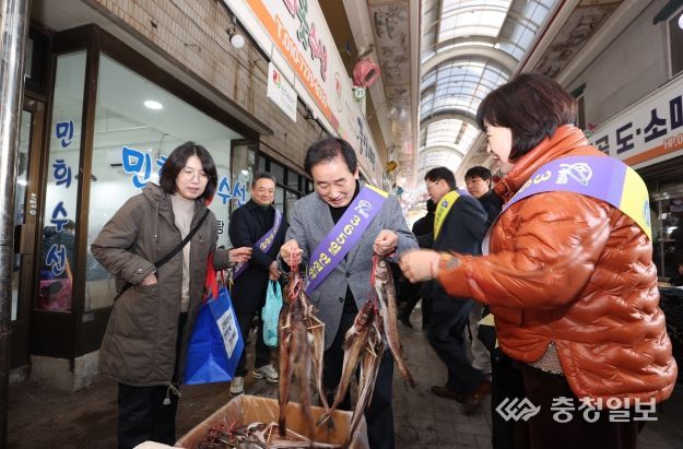 충청일보 김문호 기자 | 송기섭 진천군수는 25일 민족 최대 명절 설을 맞아 관내 전통시장 2개소를 찾아 장보기 행사에 참여했다.