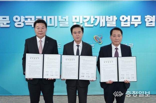 충청일보 박사현 기자 | 당진시는 20일 충남도청 상황실에서 충청남도 및 민간기업체와‘석문지구 양곡터미널 개발을 위한 업무협약’을 체결했다고 밝혔다.