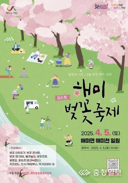 충청일보 박사현 기자 | 충남 서산시는 4월 5일 해미면 해미천 일원에서 ‘2025년 제5회 해미 벚꽃축제’가 개최된다고 밝혔다.