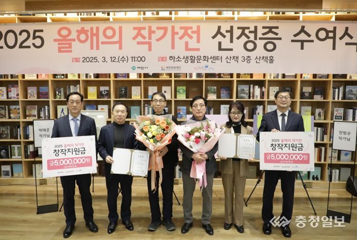 충청일보 김문호 기자 | (재)제천문화재단은 '2025 올해의 작가전'‘일상속의 변주’라는 주제로 공모를 개최하여 일반미술 부문에 장범순 작가와 미술/수묵화 부문에 박태준 작가를 각각 선정했다고 지난 14일 밝혔다.