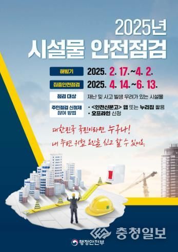 충청일보 박사현 기자 | 서천군은 ‘2025년 집중안전점검’을 앞두고 안전관리 사각지대 해소를 위해 ‘주민 점검 신청제’를 운영한다.