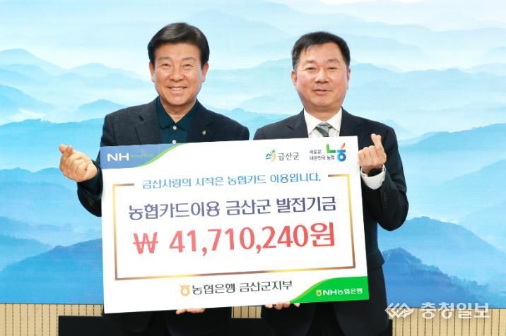 충청일보 박사현 기자 | NH농협은행 금산군지부는 지난 26일 금산군에 금산사랑발전기금 4171만 원을 전달했다.