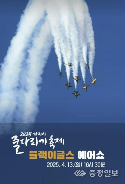 충청일보 박사현 기자 | 당진시는 오는 4월 13일 오후 4시 30분 기지시줄다리기박물관 상공에서 대한민국 공군 특수 비행팀 '블랙이글스'의 기지시줄다리기축제 축하 에어쇼가 펼쳐진다고 8일 밝혔다.