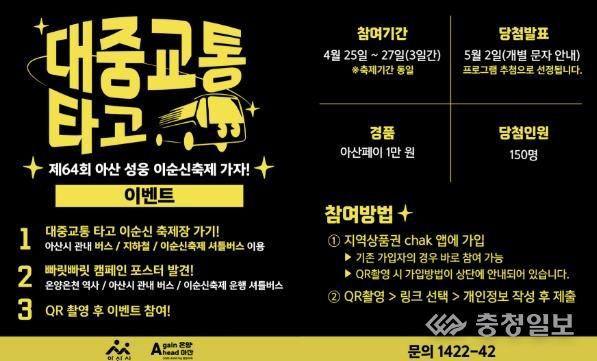 이와 함께 아산시는 축제 주무대를 수도권 전철과 기차, 버스가 집중되는 온양온천역 인근으로 이전하고, ‘대중교통 타고 축제 가기’ 캠페인을 전개한다. 자가용 이용을 줄이고 대중교통을 적극 이용하도록 유도해 교통 혼잡 해소와 탄소 저감을 동시에 달성하겠다는 전략이다.
