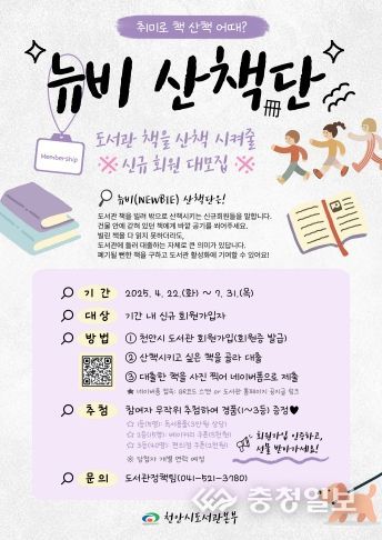 충청일보 박사현 기자 | 천안시도서관본부는 ‘천안시 도서관 방문 캠페인’을 운영한다고 24일 밝혔다.