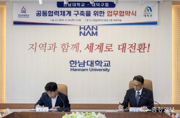 충청일보 곽채영 기자 | 대전 대덕구가 한남대학교와 지속 가능한 혁신 성장을 위해 손을 잡았다.