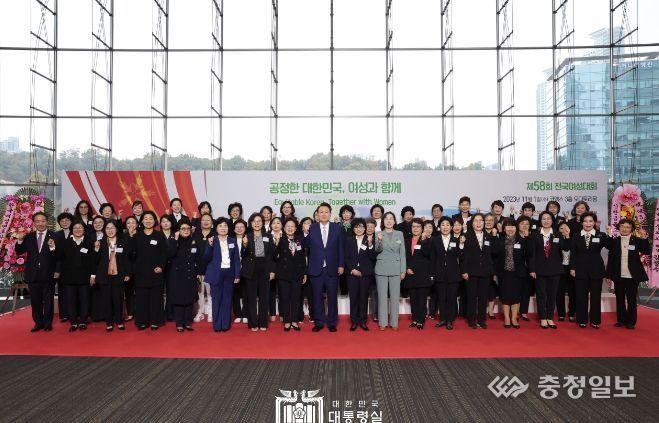 충청일보 김은경 기자 | 윤석열 대통령은 11월 1일 오후 서울 코엑스에서 ‘공정한 대한민국, 여성과 함께’를 주제로 열린 「제58회 전국여성대회」에 참석해 전국 여성 지도자들을 격려하고 일·가정 양립을 위한 국가 책임을 강조했다.