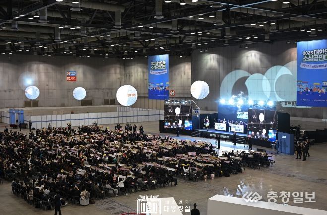 충청일보 김은경 기자 | 윤석열 대통령은 11월 3일 오전 일산 킨텍스에서 개최된 ‘2023 대한민국 소상공인대회’에 참석했습니다. 올해로 18년째를 맞은 대한민국 소상공인대회에 대통령이 참석한 건 올해가 처음이다. 오늘 행사에는 요식업, 미용업 등 다양한 업종의 소상공인 2천여 명이 전국 각지에서 모였다.