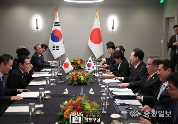 충청일보 김은경 기자 | APEC 정상회의 참석을 위해 미국 샌프란시스코를 방문 중인 윤석열 대통령은 오늘(현지시간 11. 16, 목) 10:55~11:30 약 35분간 기시다 후미오(岸田文雄) 일본 총리와 한일 정상회담을 가졌다.
