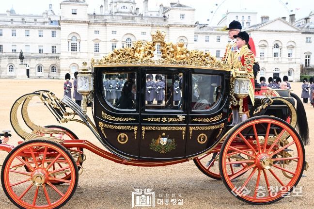 충청일보 김은경 기자 | 찰스 3세 국왕의 초청으로 영국을 11월 20일부터 11월 23일까지 국빈 방문 중인 윤석열 대통령 부부는 첫 번째 국빈 일정으로 호스가즈(Horse Guards) 광장에서 열린 공식환영식에 참석했으며, 이어서 버킹엄궁에서 개최된 국왕 주최 환영 오찬에 참석했다.