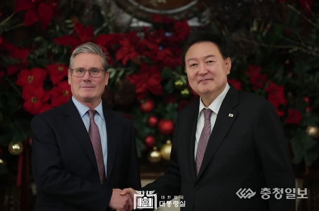 충청일보 김은경 기자 | 찰스 3세 국왕의 초청을 받아 영국을 국빈 방문 중인 윤석열 대통령은 11월 22일 오후 키어 스타머(Sir Keir Rodney Starmer) 영국 노동당 당수를 접견했다.