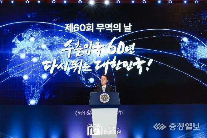 충청일보 김은경 기자 | 윤석열 대통령은 12월 5일 오전 서울 코엑스에서 개최된 ‘제60회 무역의 날 기념식’ 행사에 참석해 어려운 여건에서도 1년여 만에 수출플러스 전환에 기여한 무역인들의 노고를 격려했다. 대통령은 취임 이후 5차례 수출전략회의를 주재하고, 전 세계 90여 개국 정상을 150여 차례 만나는 등 세일즈 외교를 펼치며 우리 기업의 수출과 해외 진출을 적극 지원해 왔다.