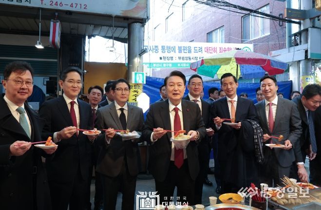 충청일보 김은경 기자 | 윤석열 대통령은 12월 6일 오전 부산에서 '부산시민의 꿈과 도전' 간담회에 참석한 이후 부산의 대표 전통시장인 국제시장 일원을 찾아 시민들과 소통하고 상인들을 격려했다. 대통령이 국제시장을 방문한 건 취임 이후 이번이 처음이다.