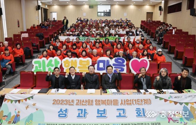 충청일보 김문호 기자 | 충북 괴산군은 지난 7일 유기농업연구소에서 5개 마을 주민 150여 명이 참석한 가운데 ‘2023년 괴산형 행복마을사업 성과보고회’를 개최했다.