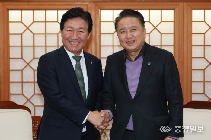 충청일보 김문호 기자 | 김영환 도지사는 8일 충북도청을 방문한 박종범 ㈔세계한인무역협회 신임 회장을 만나 충북의 산업, 예술분야 해외 진출 등 협력 방안을 논의했다.