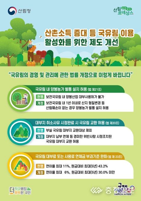 충청일보 김은경 기자 | 산림청은'국유림의 경영 및 관리에 관한 법률' 일부개정안이 국회 본회의를 통과했다고 11일 밝혔다.