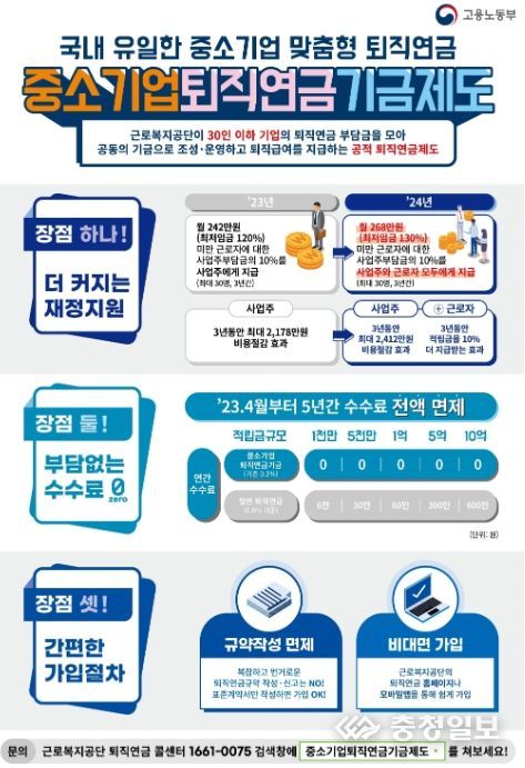 충청일보 김은경 기자 | 12월 11일 고용노동부는 내년부터 중소기업퇴직연금기금(푸른씨앗)의 재정지원을 대폭 확대할 계획이라고 밝혔다.