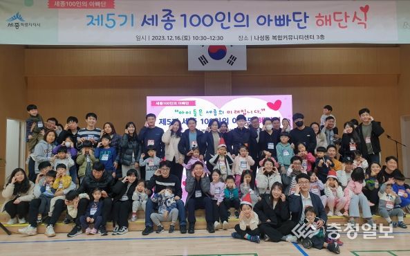 세종특별자치시는 16일 나성동행정복지센터 3층 체육관에서 인구보건복지협회 충북세종지회 주관으로 ‘제5기 세종 100인의 아빠단 해단식’을 개최했다고 밝혔다.