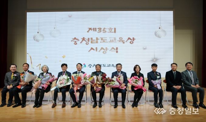 올해로 35회를 맞게 되는 충청남도교육상은 그동안 179명의 수상자를 배출했으며, 올해는 초등교육 부문에 성남초등학교 교장 박익순, 천안쌍정초등학교 수석교사 박은미, 중등교육 부문에 충남과학고등학교 교장 조익수, 천안월봉고등학교 교감 조성희, 교육행정 부문에 충청남도교육청 행정과장 구본용, 논산계룡교육지원청 시설팀장 정연풍, 평생교육 및 교육발전 유공 충남도민 부문에 초록우산 어린이재단 충남지역본부(기관표창), (사)충남영유아에듀케어연구소 이사장 맹상복이 수상의 영예를 안았다.