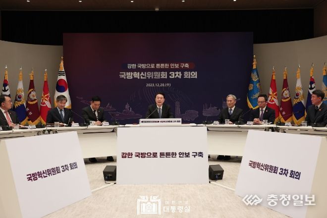충청일보 김은경 기자 | 윤석열 대통령은 12월 20일 오후 용산 대통령실에서 ‘국방혁신위원회’ 3차 회의를 직접 주재하고, 국방혁신을 성공리에 추진하기 위한 핵심 안건들에 대해 논의했다. 오늘 회의에서 참석자들은 북한의 핵·미사일 등 비대칭 위협에 대한 대비 태세 강화와 직결되는 감시·정찰 능력 증강계획, 국방획득체계 혁신 방안 등 2건을 심도 있게 다뤘다.
