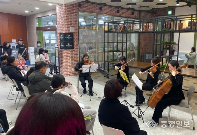 특히, 월평도서관에서 진행된 ‘음악이 흐르는 도서관’ 현악 4중주 공연은 ▲겨울왕국 OST ▲캐럴 메들리 ▲사랑의 인사 등 겨울과 연말에 어울리는 따뜻하고 편안한 곡들이 연주됐다.
