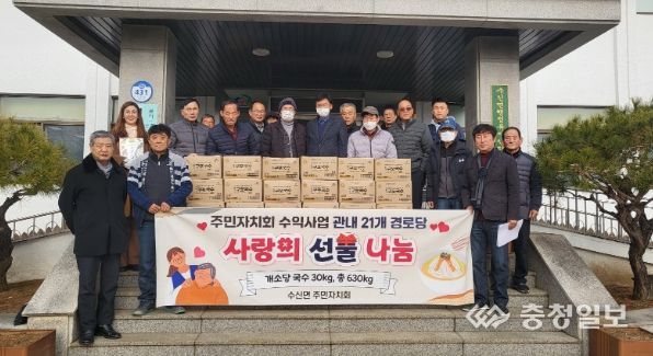 충청일보 박사현 기자 | 천안시 수신면 주민자치위원회는 지난 28일 수신면 행정복지센터에서 사랑의 선물 나눔 행사를 개최했다.