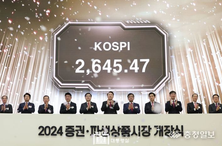 충청일보 김은경 기자 | 윤석열 대통령은 1월 2일 오전 한국거래소 서울 사옥에서 개최된 ‘2024년도 증권·파생상품시장 개장식’에 참석했다.