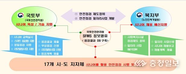 옥천군은 스마트시설안전관리 매니저 10명을 육성하여 관내 경로당 312개소 대상으로 안전점검에 나선다. 시니어의 안전점검 결과 안전성에 문제가 큰 시설은 국토안전관리원 전문가가 직접 정밀 안전점검을 통해 보수·보강 등 방안을 제시하고, 그린 리모델링 사업과 연계해 시설개량 비용도 지원한다.