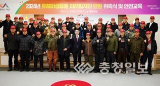 충청일보 박사현 기자 | 충남 서산시는 5일 시청 대회의실에서 유해야생동물로 인한 농작물 피해를 최소화하고 아프리카돼지열병(ASF) 차단을 위해 공개모집으로 선발된 피해방지단 40명을 위촉하고 안전교육을 실시했다고 밝혔다.