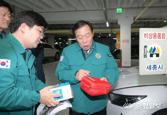 최민호 시장은 이날 오후 시청 지하 민방위 비상대피시설을 점검한 후 대피시설로 지정된 보람동 호려울마을 5단지아파트 지하주차장으로 이동, 대피시설 내 비상용품을 점검했다.