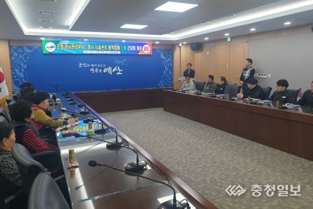 충청일보 박사현 기자 | 예산군은 2024년 새해를 맞아 깨끗하고 안전한 군청사를 만들기 위해 군청 5층 중회의실에서 청사 관리부서와 시설·청소관리 용역업체 직원 20명과의 소통 간담회를 실시했다고 8일 밝혔다.