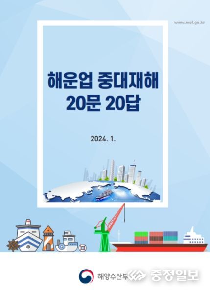 충청일보 김은경 기자 | 해양수산부는 해운업계가 「중대재해 처벌 등에 관한 법률」이 해운 종사자들에게 쉽게 이해되고, 현장에서 잘 적용될 수 있도록 ‘해운업 중대재해 20문 20답’ 전자책을 제작했다.