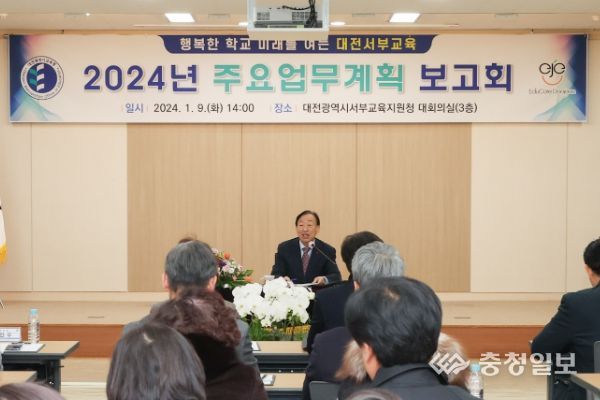 충청일보 곽채영 기자 | 대전서부교육지원청은 1월 9일 대회의실에서 설동호 대전광역시교육감, 공․사립 유치원장, 초․중학교 교장, 서부 관내 학교운영위원장 등 80여 명이 참여한 가운데 대전서부교육 비전 공유를 위한 '2024년 주요업무계획 보고회'를 개최했다고 밝혔다.