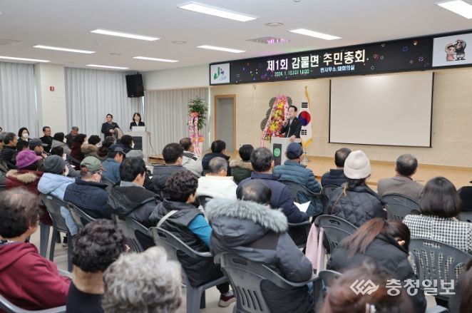 충청일보 김문호 기자 | 충북 괴산군 감물면 마을기획단은 지난 10일 감물면민 150여 명이 참석한 가운데 지역 내 뜨거운 관심을 불러 모으며 ‘제1회 감물면마을기획단 주민총회’를 개최했다.