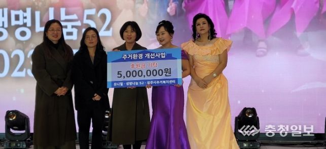 충청일보 김문호 기자 | ‘생명나눔 52’(회장 박상임)는 11일 청주시주거복지센터(센터장 정주남)를 찾아 청주시 주거 취약계층이 따뜻한 겨울을 날 수 있도록 보일러 교체 지원금 500만원을 기탁했다.