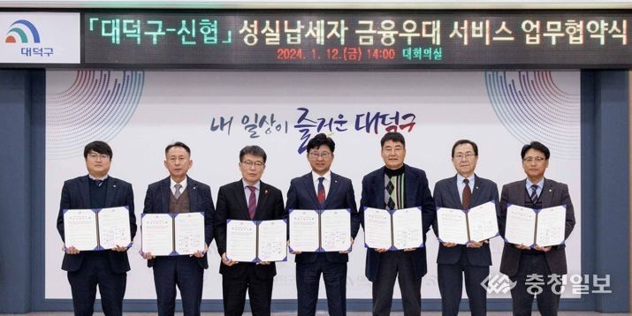 충청일보 곽채영 기자 | 대전 대덕구는 지방세 성실납세자 금융우대 서비스 확대를 위해 지역 신협 6곳과 업무협약을 체결했다고 밝혔다.