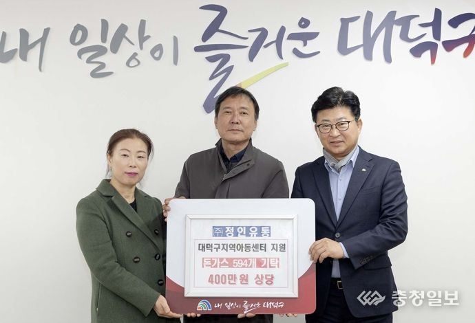 최충규 대덕구청장은 “지역의 아동들을 위해 따뜻한 마음을 나눠 주신 ㈜정인유통 임직원분들께 감사드린다”라며 “대덕의 아이들 모두가 행복한 일상을 누릴 수 있도록 최선을 다하겠다”라고 말했다.